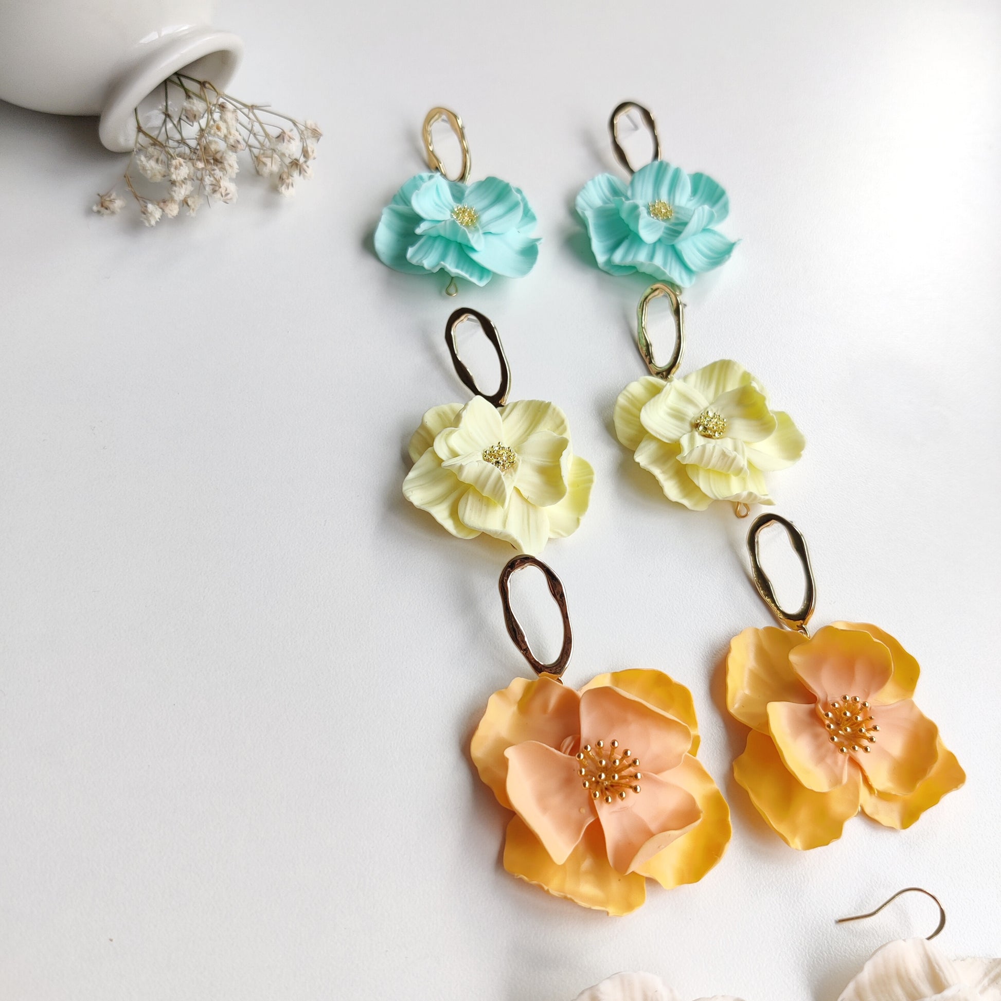 ♥ These beautiful spring floral earrings are sure to make a statement! Each piece is hand crafted out of polymer clay, which is a very delicate, lightweight and comfortable material.