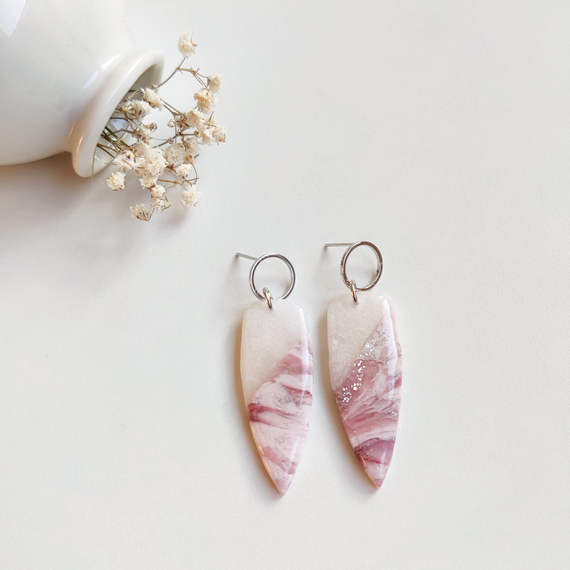 ♥ These beautiful spring marbled earrings are sure to make a statement! Each piece is hand crafted out of polymer clay, which is a very delicate, lightweight and comfortable material.